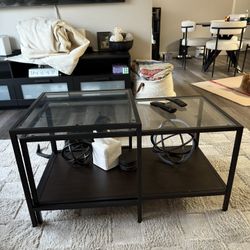 47.5" X 23.5" X 17.75" High - Benzara Black Metal W/ Clear Glass Top Coffee Table - Glass Inserted Metal Table Set with Tubular Framing - Works Great!$20Las Vegas, NV