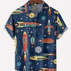 🚀 New! Bright Rocket Shirt Button Down Casual Planet Shirt w Pocket Size Large$15Las Vegas, NV