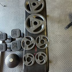 Two 35lb Metal Olympic Plates And Curl Bar$130Las Vegas, NV