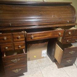 🪵 Vintage Quarter-Sawn Oak Roll-Top Desk – Hidden Storage $900Las Vegas, NV