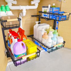 NATURE'S SOURCE 2 Pack Under Sink Organizers And Storage Height Adjustable Pull Out Cabinet Drawers Organizer 2 Tier Metal Slide Out Sink Shelf Cabine$25Las Vegas, NV
