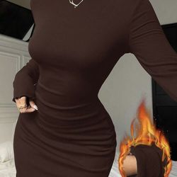 SHEIN EZwear Autumn/Winter New Knitted High Elasticity Thermal Lining Slim Fit Women Dress Women Long Sleeve Dress brown Sexy Dress Curve$15Las Vegas, NV