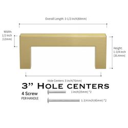 Gold/ Brushed Brass 3” Hole Center Cabinet Square Drawer Dresser Knobs Furniture Pulls Handles$2Las Vegas, NV