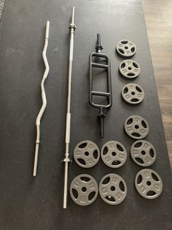 OLYMPIC SET: (1) EZ CURL BAR, (1) TRICEP BAR, (10) 10 LB PLATES NEW WORKOUT GYM EQUIPMENT$1Las Vegas, NV