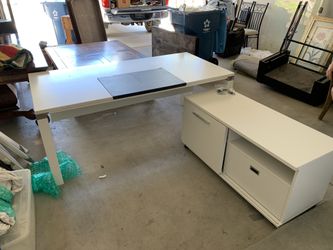 Pure white modern office desk with file credenza$350Las Vegas, NV
