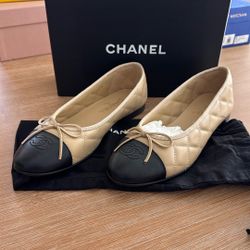 Chanel Ballet Flats Size 9 Beige/black Quilted Leather $100Las Vegas, NV