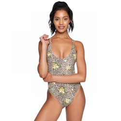 Hurley Womens Animal Print Back Tie One-Piece Swimsuit XL