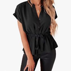 Womens Button Down Blouses Casual Peplum Summer Tops Dressy Chiffon Work Blouse$16Las Vegas, NV