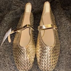 H&M Mary Jane gold Mary Jane’s flats in braided, coated fabric. Adjustable foot strap with buckle in metal. Size 9$40Las Vegas, NV