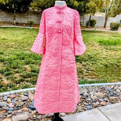 VTG Charles & Co Pink Chinese Asian Quilted Pullover Button Long Dress Coat EUC$150Las Vegas, NV