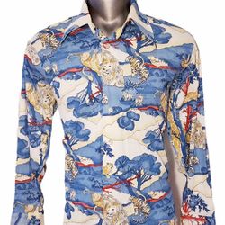 DONEGAL MAN HAWAIIAN LONG SLEEVE VINTAGE SHIRT SIZE XL LION TIGER LEOPARD