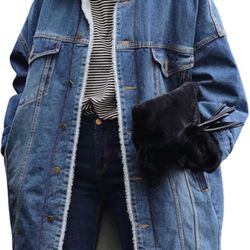 CHARTOU Women's Thick Fleece Lined Button Down Mid Long Quilted Denim Jacket Overcoat$4Las Vegas, NV