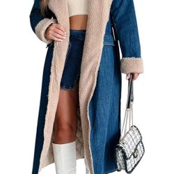 yoeasy Womens Warm Winter Sherpa Fleece Lined Long Denim Coat Windproof Thick Denim Trench Coat with Belt$19Las Vegas, NV