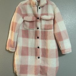 White Plaid Button Down Fleece teddy Coat jacket size small$20Las Vegas, NV