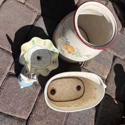 Set of 2 Ceramic Round Flower Pots Beige Green Cactus Design$20North Las Vegas, NV