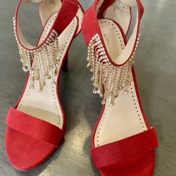 Adrienne Vittadini Gala Dress High Heels Women's Red Rhinestone Fringe Zipper$50Henderson, NV