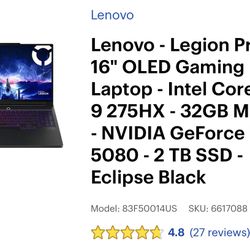 Lenovo - Legion Pro 7i 16" OLED Gaming Laptop - Intel Core Ultra 9 275 - RTX 5080$2,900Las Vegas, NV