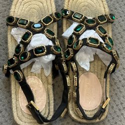 Gucci Grosgrain Espadrille Sandal With Green Crystal Stones$180Las Vegas, NV