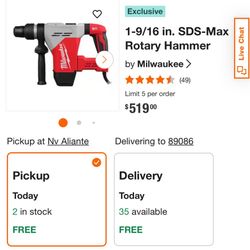 Milwaukee Fuel M18 Rotary Hammer$290North Las Vegas, NV