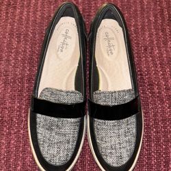 Clarks Ultimate Comfort Collection Womens Shoes Size 7 1/2 Black Plaid Office Slip On$20Las Vegas, NV