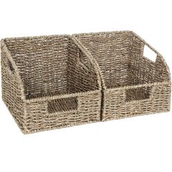Creekview Home Emporium 2-Pack Seagrass Wicker Storage Baskets for Shelves and Pantry - Decorative Wicker Cubby Baskets Storage Bins with Handles for $25Las Vegas, NV