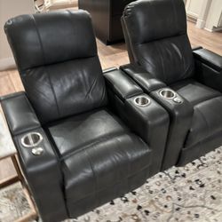 3 pieces total, 2 leather theater recliner chairs with cup holders and Power reclining couch.$200Henderson, NV