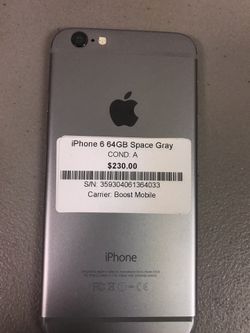 iPhone 6 64GB Space Gray Boost Mobile$230Las Vegas, NV