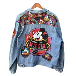 Vintage 90s Disney Mickey Mouse Patchwork Red Blue Denim Jean Jacket$280Las Vegas, NV
