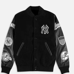 Black With Brown Leather Arms varsity bomber jacket$40Henderson, NV
