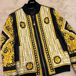 Gianni Versace Barocco Black White Yellow Quilted Bomber Jacket$950Las Vegas, NV