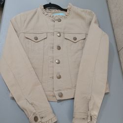 Like New Worn Once XS Draper James Stretchy Jean Nude Beige Jacket With Ruffle Detail$35Las Vegas, NV