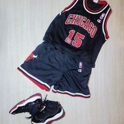 Vintage Champion Chicago Bulls Kids Jersey and Shorts Set Ron Artest size 10-12 Large.