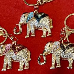 Lot 3 ELEPHANT RHINESTONES PUFFY GOLD TONE RED BLACK BLUE KEYCHAIN 2.5” x 1 3/4” ‼️ Price Is FIRM ‼️$19Las Vegas, NV