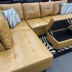 Beige Leather Sectional w/Storage Ottoman$750Las Vegas, NV