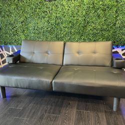 Black Leather Futon With Plugs & USB pick up only$50Las Vegas, NV