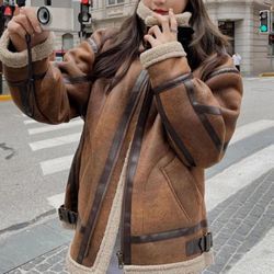 Suede Leather Jacket Women Lambswool Outwear Winter Long Sleeve Zipper Moto Biker Coat$3Las Vegas, NV