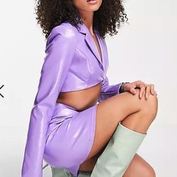 Kyo Leather Look Clasp Front Detail Cropped Blazer In Purple$10Henderson, NV