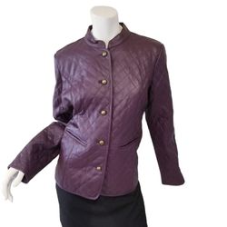 ISSAC MIZRAHI GENUINE LEATHER WOMAN QUILTED JACKET PURPLE NEW WITH TAGS SZ LARGE