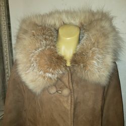 Vintage Suede Coat Real Fur Collar AUDREY HEPBURN STYLE., Satin Lining$90Las Vegas, NV