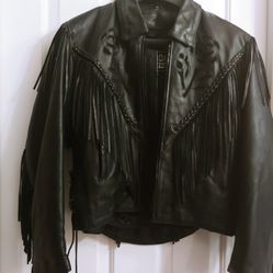 Black Leather Fringed Jacket w/ Die Cut Black Rose$225North Las Vegas, NV