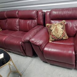 Beautiful, Elegant Luxury Burgundy, Italian Leather, All Electric, Powered Pushbutton Sofa And Matching Swivel Rocker Recliner Chair WEEKEND SPECIAL !$499Las Vegas, NV