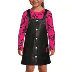 Barbie by Mattel Girl's Black Faux Leather Snap Front Jumpsuit Dress Size 2T $30Las Vegas, NV