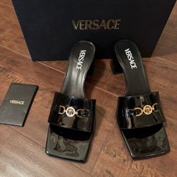 NIB Versace Logo Patent Leather Black Sandals Size 39$399Las Vegas, NV