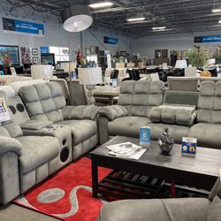 Beautiful Elegant Upscale Luxury Gray Italian Leather Double Recliner Sofa And Matching Double Recliner Loveseat With USB Ports WEEKEND SPECIAL PRICE!$799Las Vegas, NV
