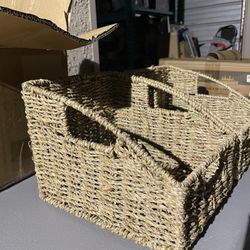 Creekview Home Emporium 2-Pack Seagrass Wicker Storage Baskets for Shelves and Pantry - Decorative Wicker Cubby Baskets Storage Bins with Handles for $25Las Vegas, NV