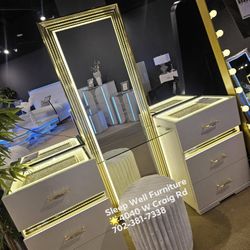 New Glam Makeup Vanity: 13 Drawers with Interior Lights, LED - Mirrored & 2 Shelfs (Included Chair) $1,290Las Vegas, NV