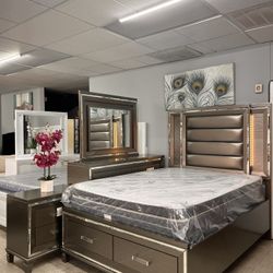 Beautiful Queen Or King Bedroom Set Champagne Color Led Lights Drawers On Footboard NEW$1,499Las Vegas, NV