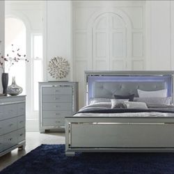 4PCS Queen Bellanova Silver Bed w/ LED (Mattress is not Included) 👍90 days FREE FINANCING ❗ $1,649Las Vegas, NV