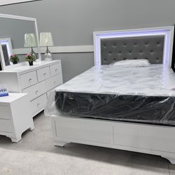 🔥ON SALE🔥 4pcs White Bedroom Set W/LED Lights (Mattress not Included)🔥 👍90 days FREE FINANCING ❗ $1,899Las Vegas, NV