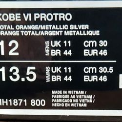 Kobe Vl Pronto Total Orange/Metallic Silver-size 12$120North Las Vegas, NV
